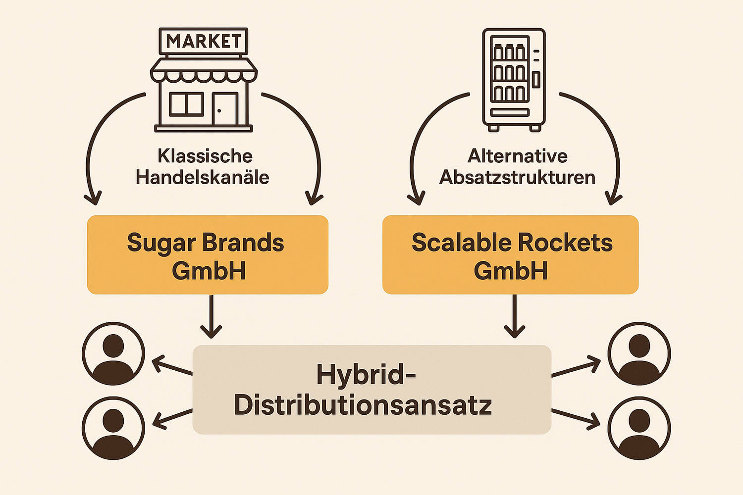 Die Umsetzung erfolgt in enger Zusammenarbeit zwischen der Sugar Brands GmbH und unserer Tochtergesellschaft Scalable Rockets GmbH. Während Sugar Brands den Zugang zu etablierten Handelsstrukturen wie Lebensmitteleinzelhandel, Drogerie oder Fachhandel steuert, ist Scalable Rockets auf zielgruppenspezifische Mikrokonzepte innerhalb alternativer Absatzkanäle spezialisiert.